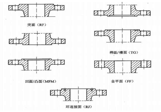 法(fa)蘭密封(feng)面型式(shi)及代号(hao)按圖所(suo)示。法蘭(lan)的密封(feng)面包括(kuo):突面、凹(ao)面/凸面(mian)、榫面/槽(cao)面、全平(ping)面和環(huan)連接面(mian)😁。我公司(si)硝酸項(xiang)目上常(chang)用法蘭(lan)密封面(mian)型式為(wei)突面。