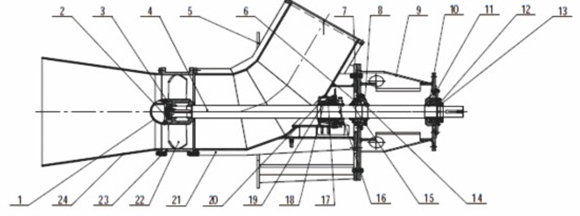 1-導流罩 2-葉(ye)輪鎖緊蓋(gai) 3-葉輪卡環(huan) 4-軸 5-泵支架(jia) 6-下軸承壓(ya)蓋 7-下軸承(cheng)下擋套 8-下(xia)軸承盤 9-軸(zhou)承支架 10-軸(zhou)承墊日 11-上(shang)軸承盒 12-軸(zhou)承墊圈 13-上(shang)✡️軸承壓蓋(gai) 14-下軸承上(shang)擋目 15-下軸(zhou)承壓蓋 16-填(tian)料壓蓋組(zu)件 17-水封環(huan)👩🏼❤️👨🏾 18-填料箱 19-填(tian)料 20-軸套 21-泵(beng)體 22-葉輪 23-短(duan)節 24-吸入錐(zhui)管
